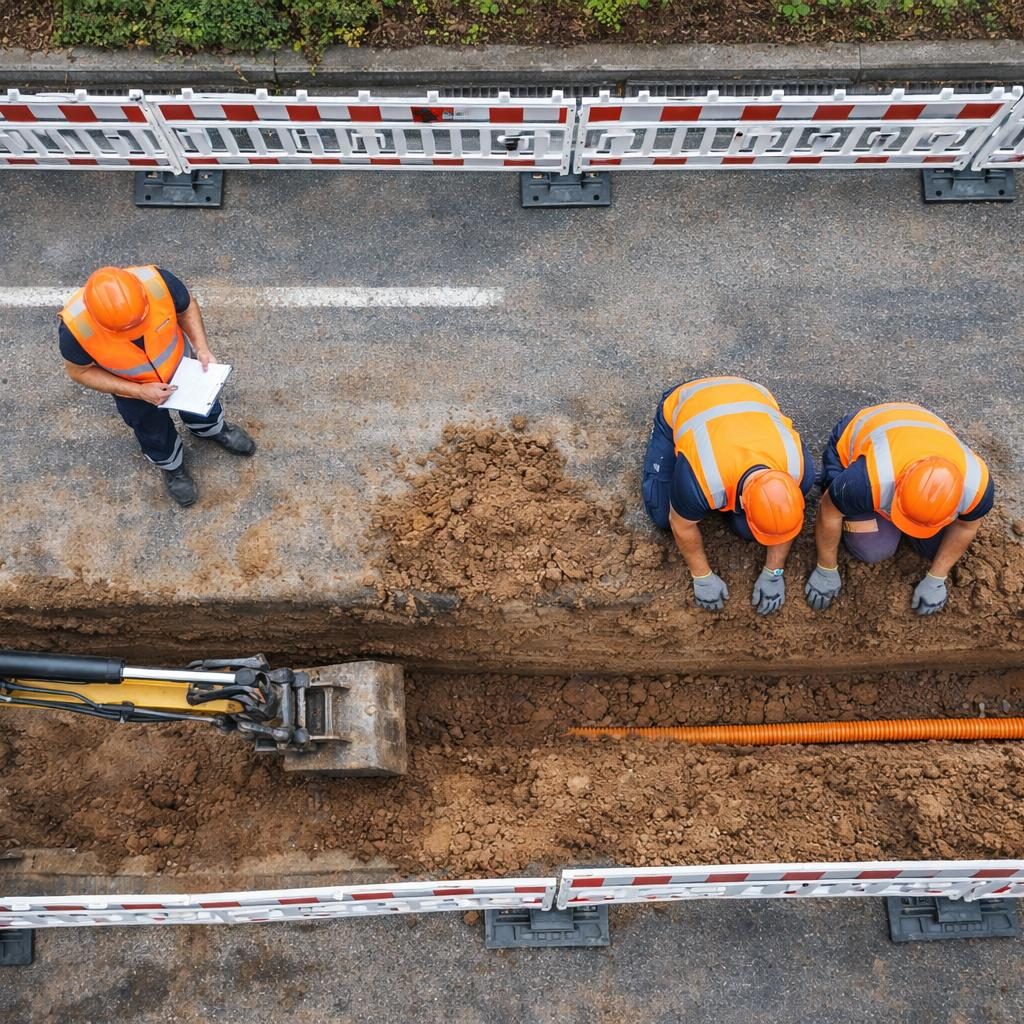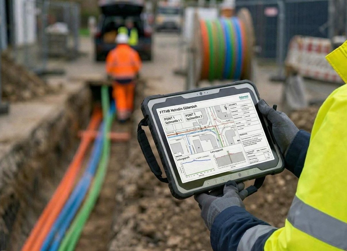 Durch den Einsatz fortschrittlicher Verlegetechniken, optimierter Bauverfahren und digital unterstützter Prozesse steigern wir die Effizienz auf der Baustelle und reduzieren gleichzeitig Eingriffe in bestehende Infrastrukturen. Dies ermöglicht eine schnellere Umsetzung bei gleichbleibend hoher Qualität.